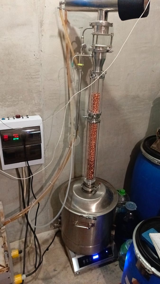 Перегонял чачу на 2" 15 см рашига медь 1кг спн 9х9 медь 2,4кв 1200мл/ч скорость по жидкости 95% Ароматика отличная