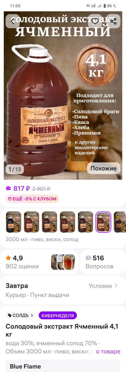 На wb . Продавец на скрине. По-моему, один из рекомендованных. Взял просто ячменный. Буду пробовать. Naruto, подскажи, озвучивал что воронежские с брахманами женить можно. А есть ли разница, что и в какой последовательности засыпать?