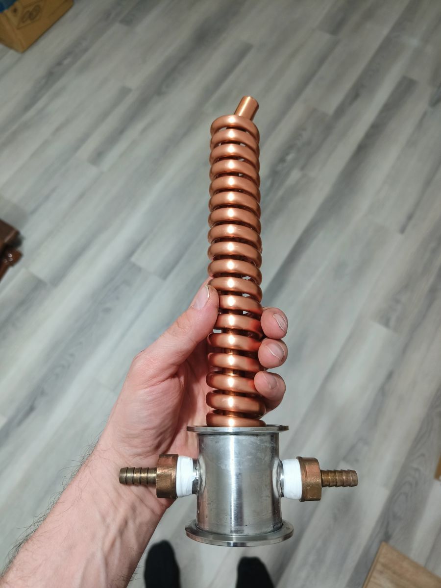 Олеган Опубликовано Вторник в 15:48 Автор Опубликовано Вторник в 15:48 (изменено) 5 минут назад, Pepel_zbei сказал: оборудование для двух перегонов разное??? брагу на обычном дистилляторе делаю, ректификацию уже на РК, последующую дистилляцию ровно на ней же 5 минут назад, Pepel_zbei сказал: медь есть в паровой зоне? Сначала делал на нержовом димроте, а после того как поставил медный димрот от полторашки заметил что несмотря на 4 кг медной засыпки, на нем конкретно так образуется налет. По этому купил для этого дела новый медный димрот, этот Изменено Вторник в 15:50 пользователем Олеган