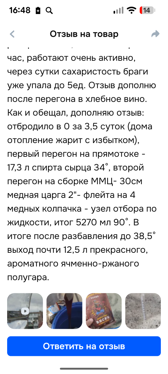 Naruto Опубликовано 20 октября Автор Опубликовано 20 октября @Alexx_Any спасибо за подробный отзыв. Эта партия особенно удачная, посмотри дату розлива пожалуйста. Мне понимать чья была смена. Ещё один отзыв с Озона есть, у человека выход даже больше чем у тебя. И у слову дрожжи он использовал какие то турбо "Мишка Гонит" виски. Так у него выход 0,42 что ли с 1 кг или даже больше. Но там конечно вопрос к коррекции Т при измерении. Но тем не менее. 1