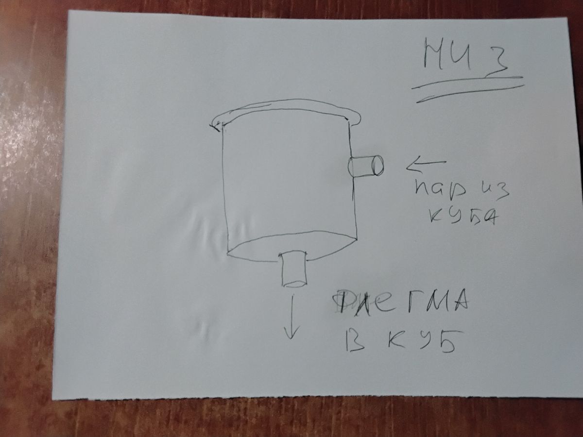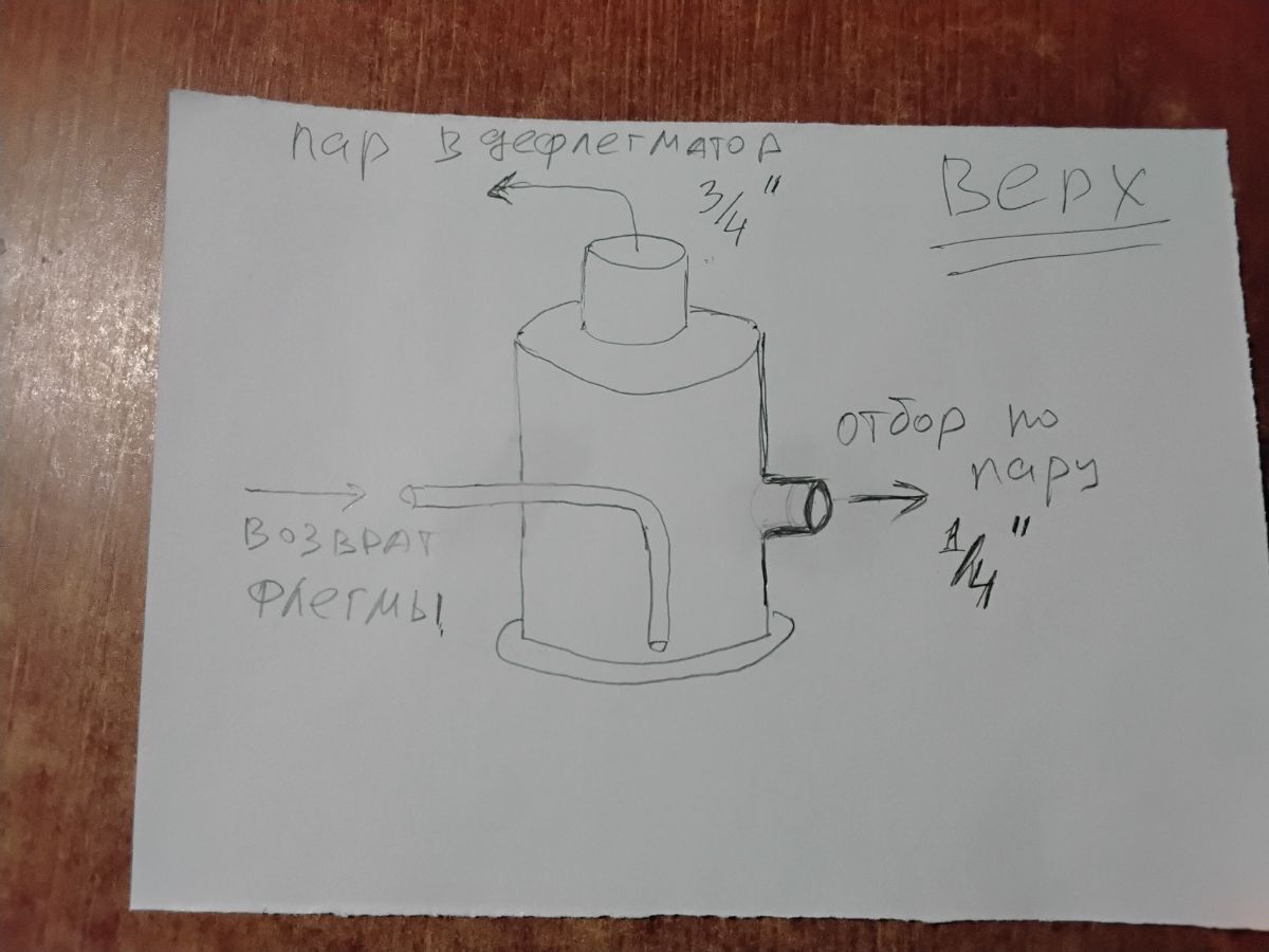 д.Вова Опубликовано 12 часов назад Опубликовано 12 часов назад (изменено) 2 часа назад, RSM сказал: Заипал ты его, не ответит. Вот представь ,что УО лежит прям на пыже или концентраторе( спецом выбрал крайняк для лучшего понимания). Чаще всего пар входит в уо через кольцо с площадью примерно 50% от сечения царги ( чаще всего, но не всегда , т.к. конструкции уо разные бывают). И вот пар со всего сечения царги устремляется в узкую дырку уо. А на встречу ему флегма. И в этой узкой дырке верхний захлёб. Все опытные пользователи рекомендуют делать это расстояние не менее 1/2 диаметра царги. Фу, блин, устал! Если дошло, то плюсани хоть, не зря ж старался!!))))))).. Тоже плюсанул, хоть до конца все равно так и не понял, че то я туплю наверно, все видимо уже поняли кроме меня. Дело то вот в чем, почему я к этому вопросу вернулся. У меня колонна забита мочалками, мочалками мать его(!), а не насадкой, а захлебывается где то на 1,3 кВт, все удивляются захлебу на мочалках. Я думал может как то из за неравномерности что ли, мочалки всё таки... Верхний захлеб или нижний, я не особо разбираюсь, но это захлеб, сто пудов, давление растет до 100см. в.с. и выше. Может быть как раз причина была в том что трубка возврата упирается в верхние мочалки? Или почти упирается, посмотреть не могу, на даче всё это хозяйство. Но скорее всего нет там свободного пространства даже пары миллиметров. Схемки своей верхней и нижней части колонны прилагаю, что б понятно было о чем я. Между верхом и низом царга 169см, на клампах, сейчас в царге мочалки, летом будет насадка. Изменено 12 часов назад пользователем д.Вова
